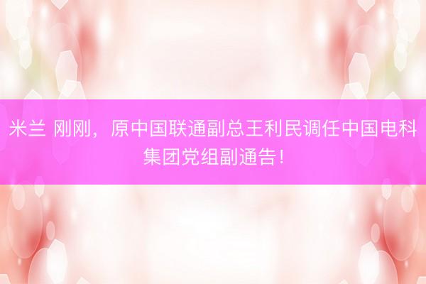 米兰 刚刚,原中国联通副总王利民调任中国电科集团党组副通告!