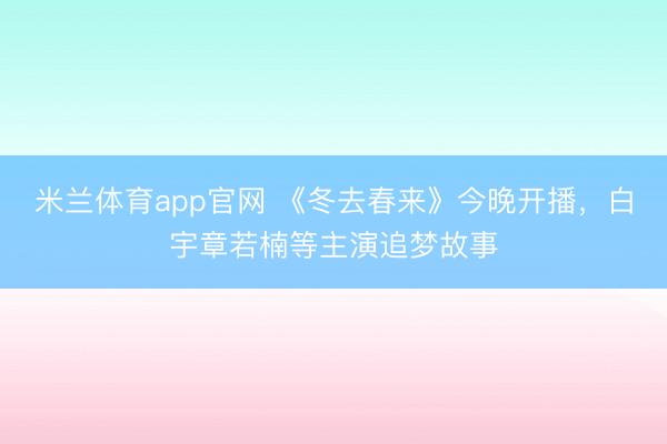 米兰体育app官网 《冬去春来》今晚开播,白宇章若楠等主演追梦故事