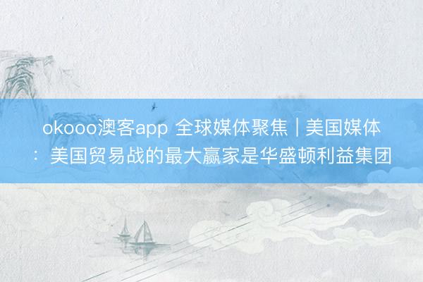 okooo澳客app 全球媒体聚焦 | 美国媒体:美国贸易战的最大赢家是华盛顿利益集团