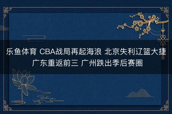 乐鱼体育 CBA战局再起海浪 北京失利辽篮大捷 广东重返前三 广州跌出季后赛圈