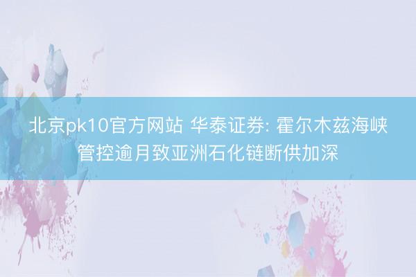 北京pk10官方网站 华泰证券: 霍尔木兹海峡管控逾月致亚洲石化链断供加深