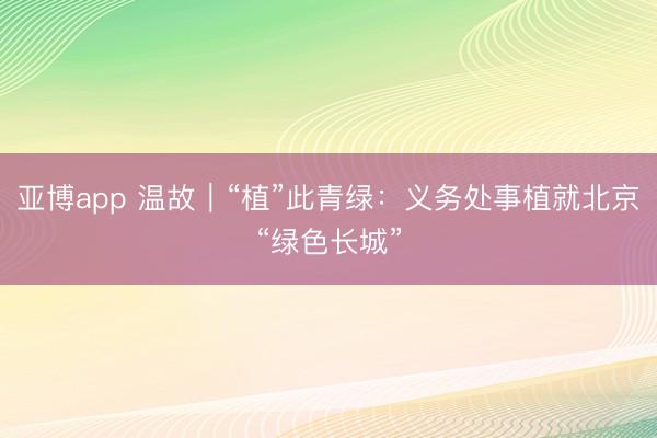 亚博app 温故|“植”此青绿:义务处事植就北京“绿色长城”