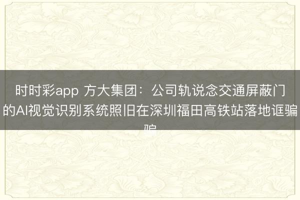 时时彩app 方大集团:公司轨说念交通屏蔽门的AI视觉识别系统照旧在深圳福田高铁站落地诓骗