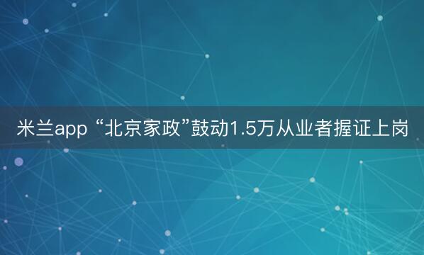 米兰app “北京家政”鼓动1.5万从业者握证上岗