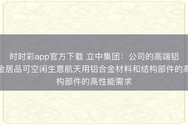 时时彩app官方下载 立中集团:公司的高端铝基中间合金居品可空闲生意航天用铝合金材料和结构部件的高性能需求
