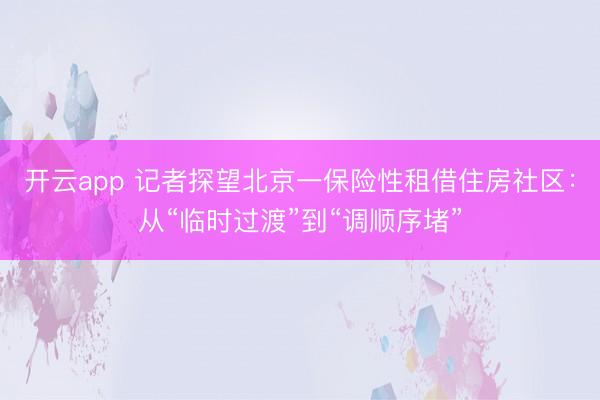 开云app 记者探望北京一保险性租借住房社区:从“临时过渡”到“调顺序堵”