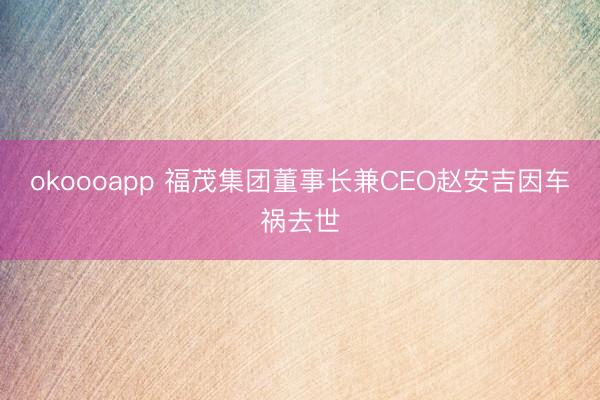 okoooapp 福茂集团董事长兼CEO赵安吉因车祸去世