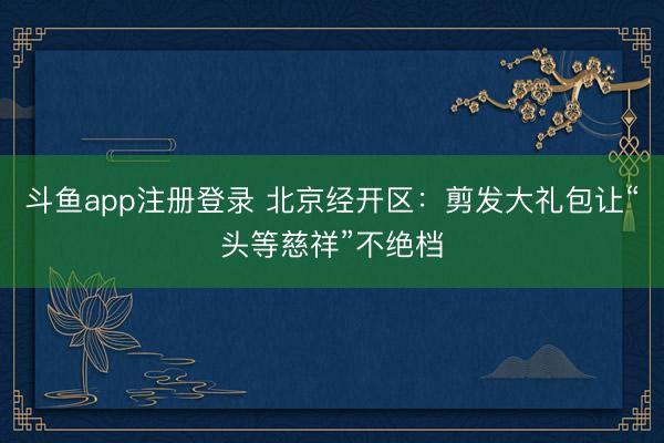 斗鱼app注册登录 北京经开区:剪发大礼包让“头等慈祥”不绝档