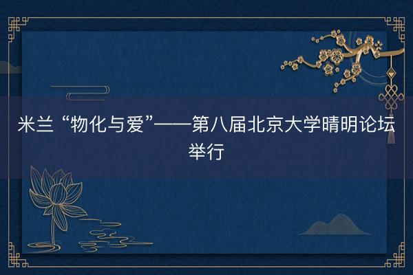 米兰 “物化与爱”——第八届北京大学晴明论坛举行