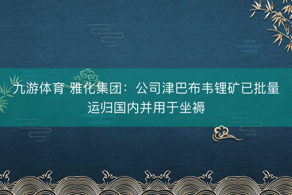 九游体育 雅化集团:公司津巴布韦锂矿已批量运归国内并用于坐褥