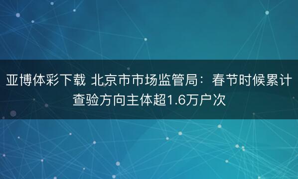 亚博体彩下载 北京市市场监管局:春节时候累计查验方向主体超1.6万户次