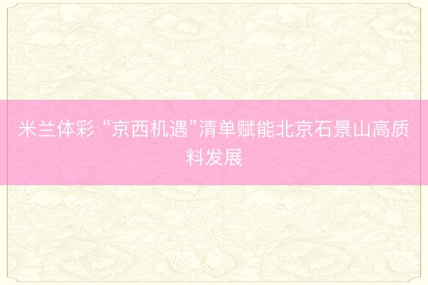 米兰体彩 “京西机遇”清单赋能北京石景山高质料发展