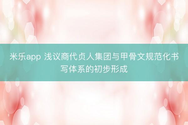 米乐app 浅议商代贞人集团与甲骨文规范化书写体系的初步形成