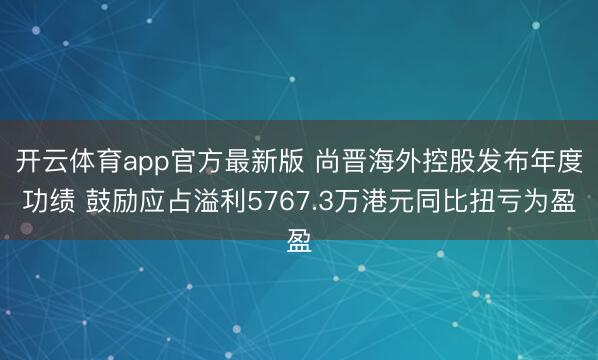 开云体育app官方最新版 尚晋海外控股发布年度功绩 鼓励应占溢利5767.3万港元同比扭亏为盈