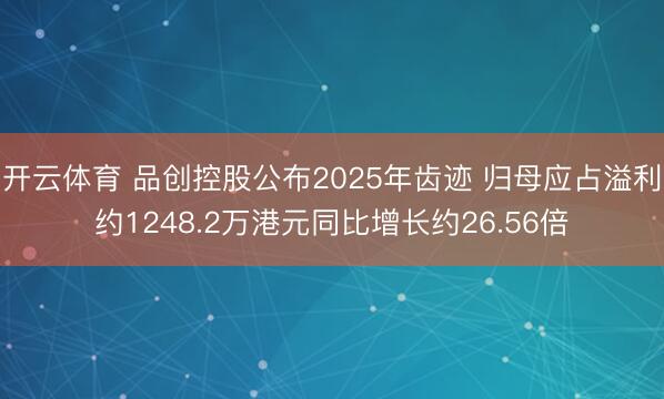 开云体育 品创控股公布2025年齿迹 归母应占溢利约1248.2万港元同比增长约26.56倍