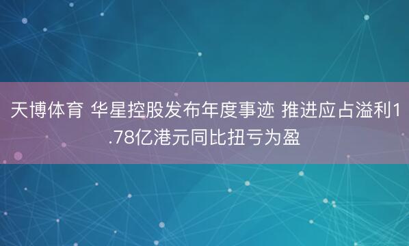天博体育 华星控股发布年度事迹 推进应占溢利1.78亿港元同比扭亏为盈