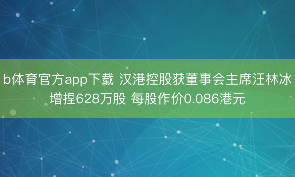 b体育官方app下载 汉港控股获董事会主席汪林冰增捏628万股 每股作价0.086港元
