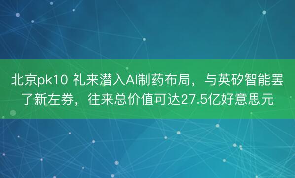北京pk10 礼来潜入AI制药布局,与英矽智能罢了新左券,往来总价值可达27.5亿好意思元