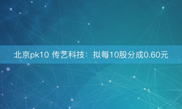 北京pk10 传艺科技:拟每10股分成0.60元