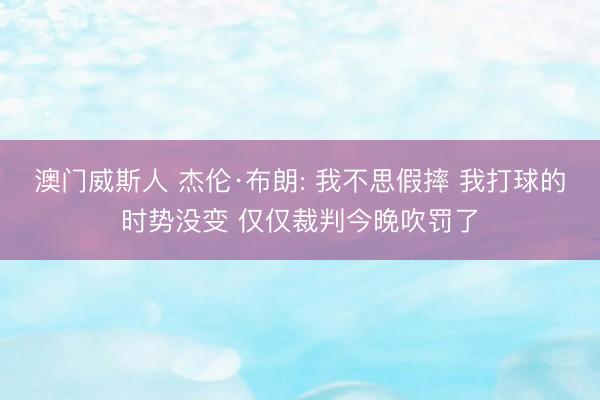 - 澳门威斯人 杰伦·布朗: 我不思假摔 我打球的时势没变 仅仅裁判今晚吹罚了