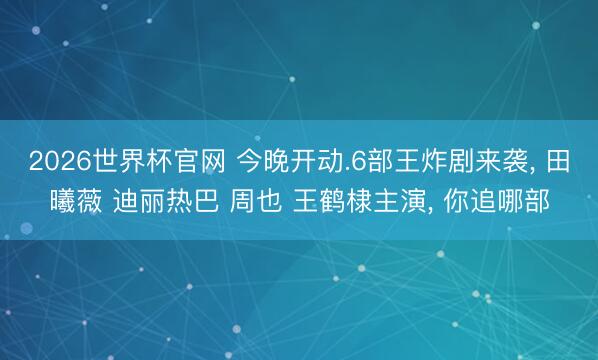 - 2026世界杯官网 今晚开动.6部王炸剧来袭, 田曦薇 迪丽热巴 周也 王鹤棣主演, 你追哪部