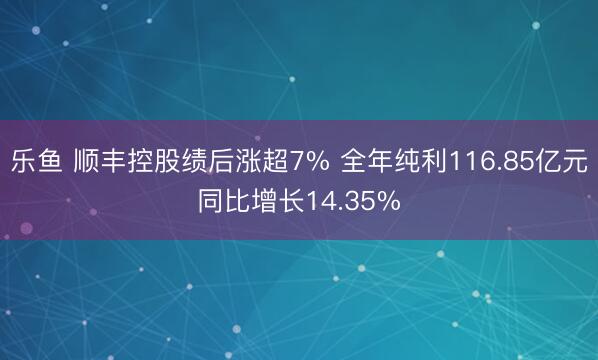 乐鱼 顺丰控股绩后涨超7% 全年纯利116.85亿元同比增长14.35%