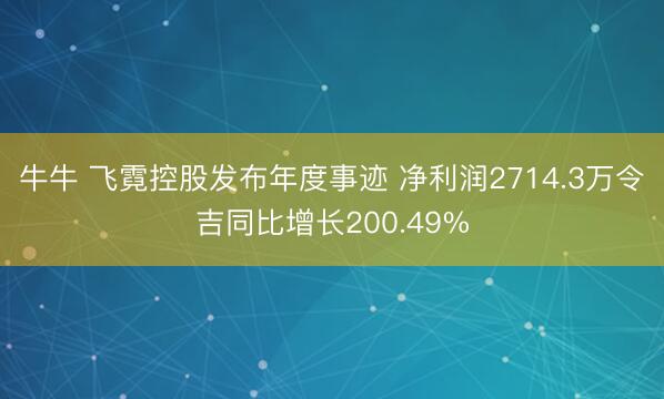 牛牛 飞霓控股发布年度事迹 净利润2714.3万令吉同比增长200.49%