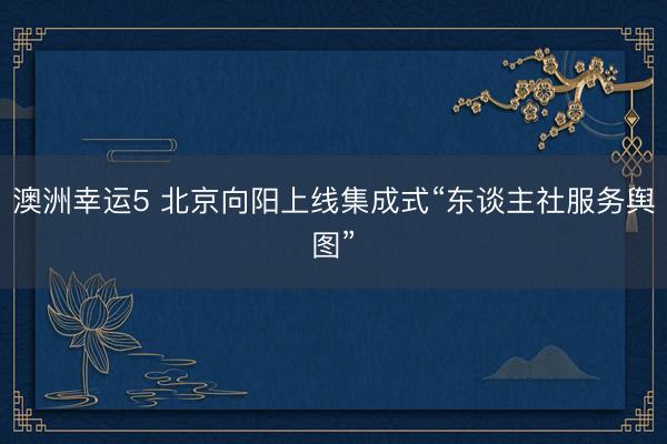 澳洲幸运5 北京向阳上线集成式“东谈主社服务舆图”