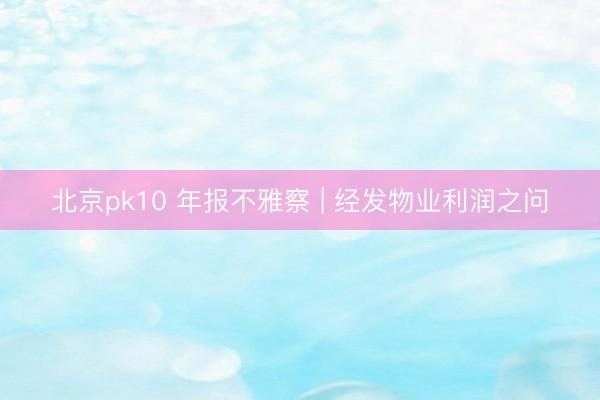 北京pk10 年报不雅察 | 经发物业利润之问