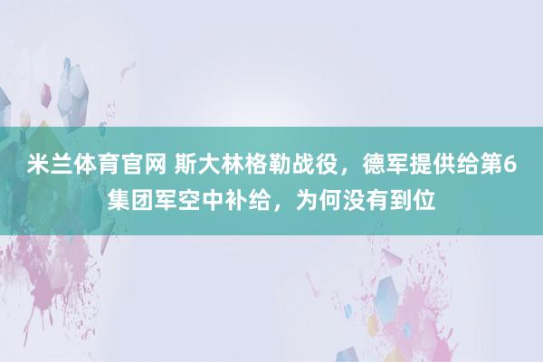 米兰体育官网 斯大林格勒战役,德军提供给第6集团军空中补给,为何没有到位