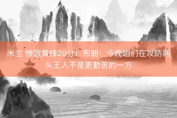 米兰 惨败黄蜂29分!布朗:今晚咱们在攻防两头王人不是更勤苦的一方
