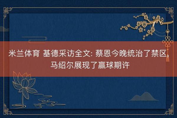 米兰体育 基德采访全文: 蔡恩今晚统治了禁区, 马绍尔展现了赢球期许