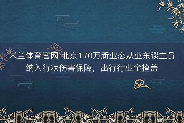 米兰体育官网 北京170万新业态从业东谈主员纳入行状伤害保障,出行行业全掩盖