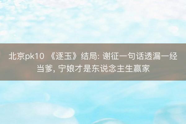 - 北京pk10 《逐玉》结局: 谢征一句话透漏一经当爹, 宁娘才是东说念主生赢家