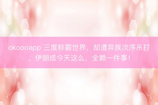 okoooapp 三度称霸世界,却遭异族次序吊打,伊朗成今天这么,全赖一件事!
