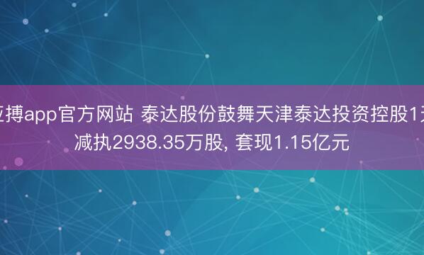 亚搏app官方网站 泰达股份鼓舞天津泰达投资控股1天减执2938.35万股, 套现1.15亿元