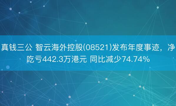 真钱三公 智云海外控股(08521)发布年度事迹,净吃亏442.3万港元 同比减少74.74%