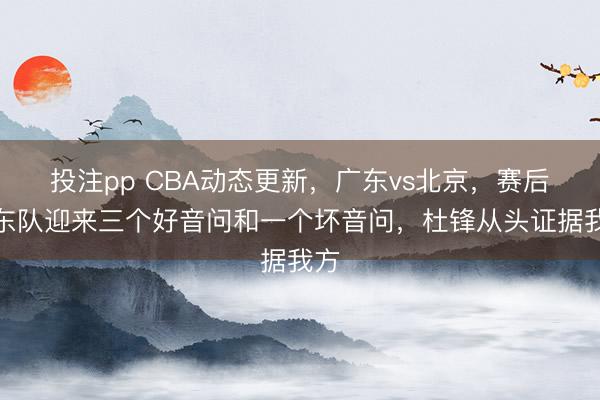 投注pp CBA动态更新,广东vs北京,赛后广东队迎来三个好音问和一个坏音问,杜锋从头证据我方
