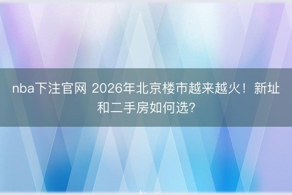 nba下注官网 2026年北京楼市越来越火!新址和二手房如何选?