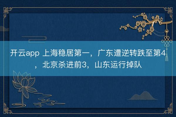 开云app 上海稳居第一,广东遭逆转跌至第4,北京杀进前3,山东运行掉队