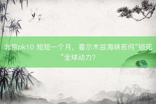 北京pk10 短短一个月,霍尔木兹海峡若何“锁死”全球动力?