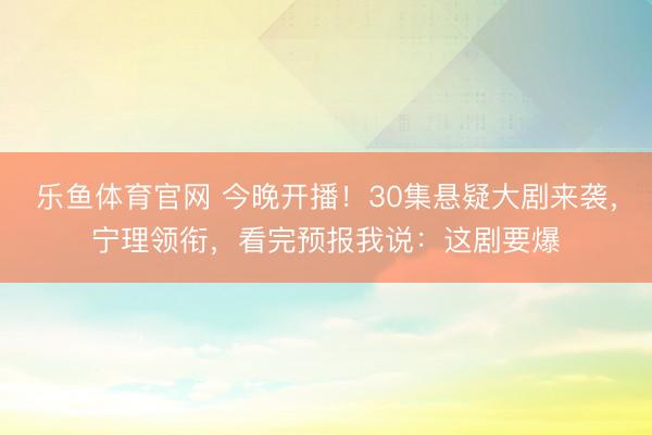 乐鱼体育官网 今晚开播!30集悬疑大剧来袭,宁理领衔,看完预报我说:这剧要爆