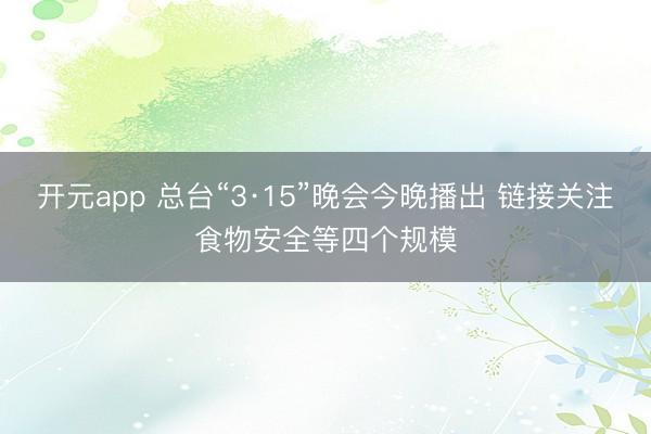 开元app 总台“3·15”晚会今晚播出 链接关注食物安全等四个规模