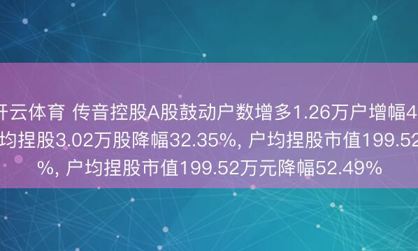 开云体育 传音控股A股鼓动户数增多1.26万户增幅49.22%, 畅达A股户均捏股3.02万股降幅32.35%, 户均捏股市值199.52万元降幅52.49%