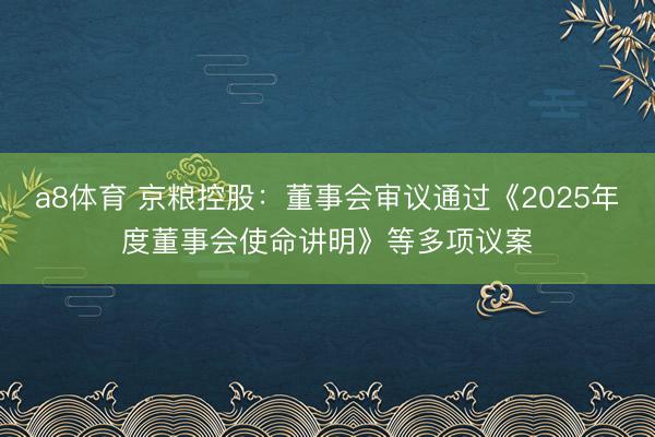 a8体育 京粮控股:董事会审议通过《2025年度董事会使命讲明》等多项议案
