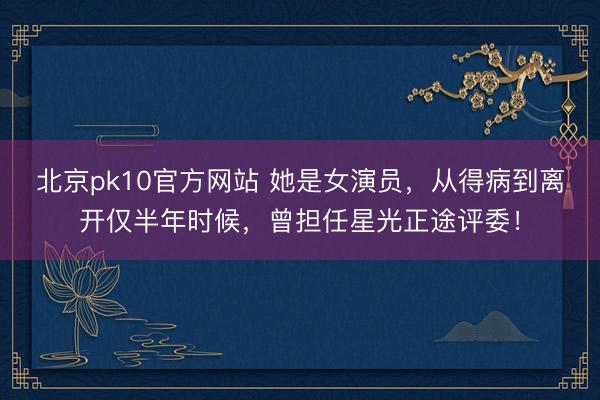 北京pk10官方网站 她是女演员,从得病到离开仅半年时候,曾担任星光正途评委!