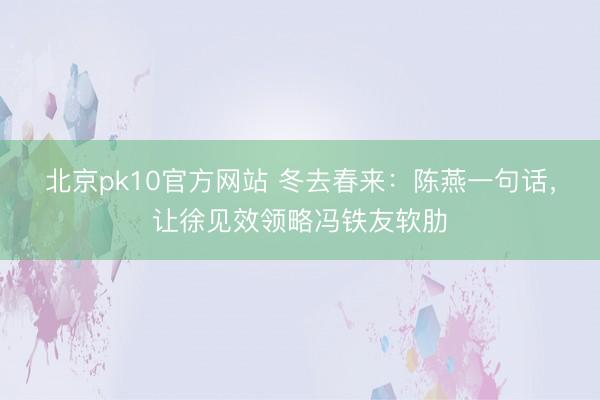 北京pk10官方网站 冬去春来:陈燕一句话,让徐见效领略冯铁友软肋
