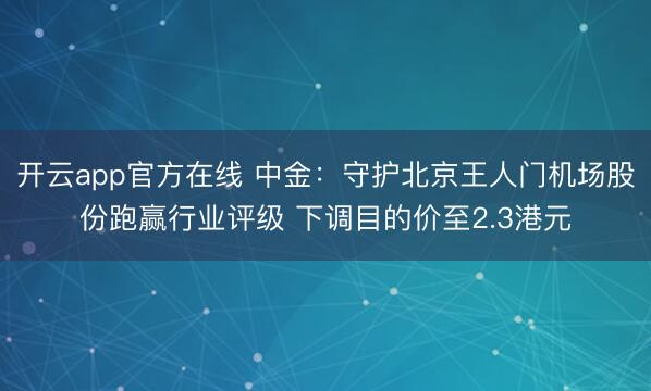 开云app官方在线 中金:守护北京王人门机场股份跑赢行业评级 下调目的价至2.3港元