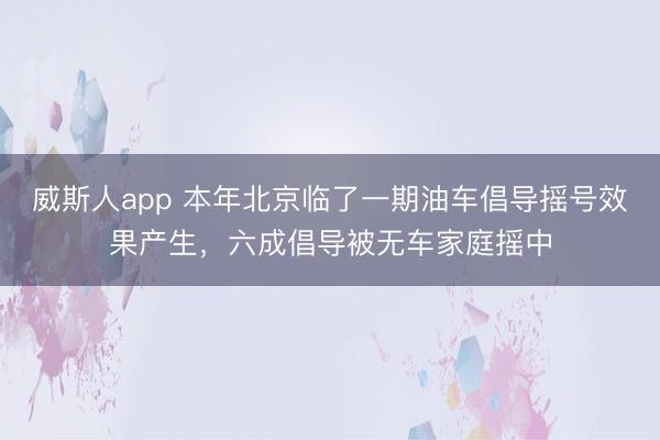威斯人app 本年北京临了一期油车倡导摇号效果产生,六成倡导被无车家庭摇中