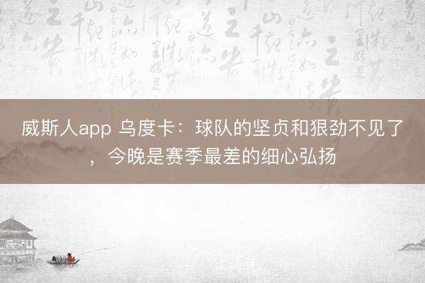 威斯人app 乌度卡:球队的坚贞和狠劲不见了,今晚是赛季最差的细心弘扬